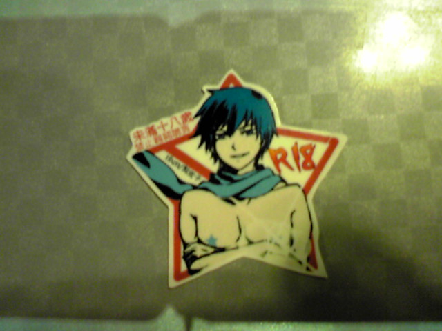 前夜の打ち上げの時にVOCAWORLDの主催さんたちから、R18作品を扱うサークルさんにはわかりやすいようにシールを配る、というお話を聞いていました。これがまた仕事を選べないKAITOのイラストで、サークルさんが使ってるところをぜひ見たい!ということでR18作品を扱っているかえでさごさんのサークルへ向かいました。