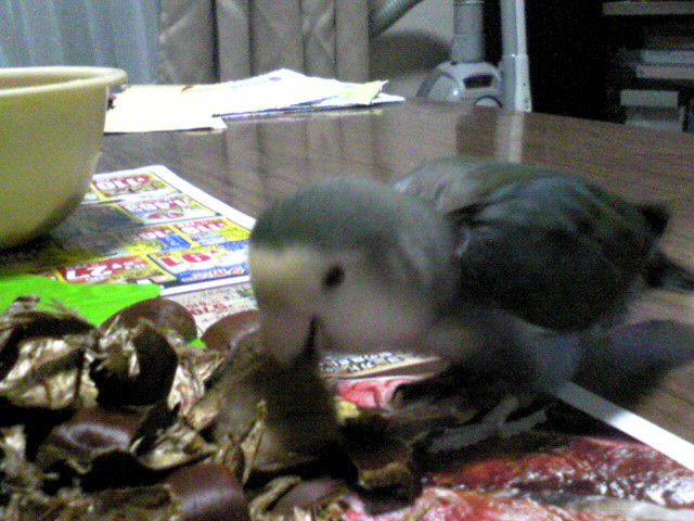 栗をむいていたら渋皮で遊んでました。うちのこ可愛い。